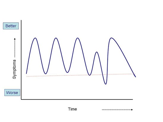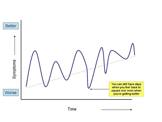When your symptoms get worse again, it’s demoralising, you feel back to square one. The graph below shows what happens.